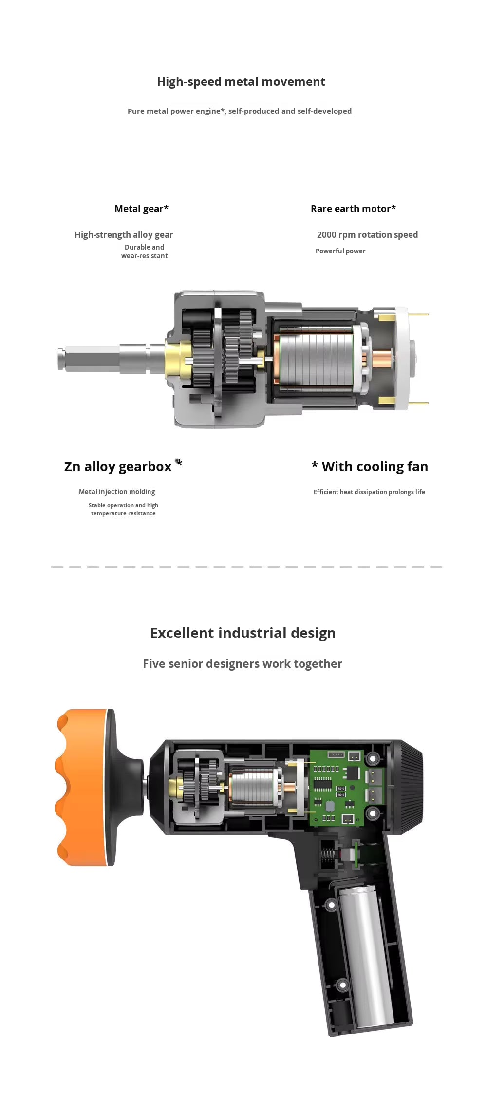 Mecanismul dual track reduce vibrațiile și ajută la distribuirea uniformă a presiunii, protejând vopseaua și obținând un finisaj lucios.